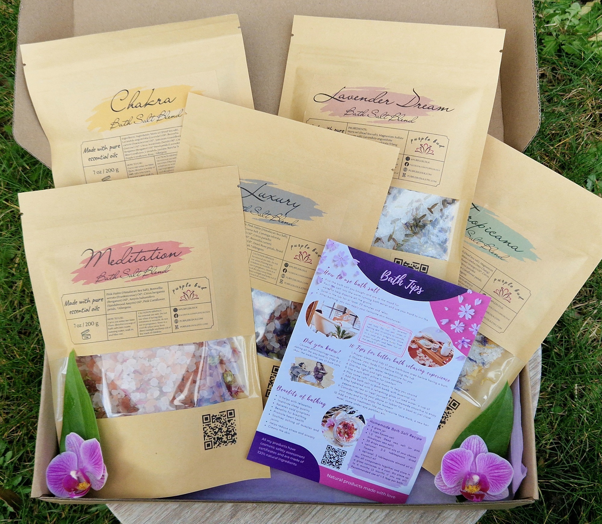Please don’t forget to specify which bath salt blends you would like to add to the gift box!!! Otherwise, the bath salt blends will be chosen randomly.
