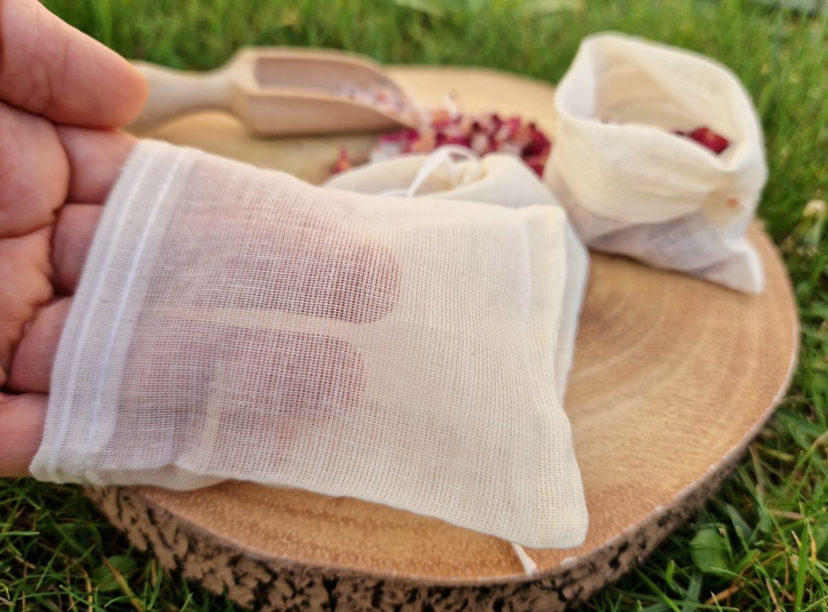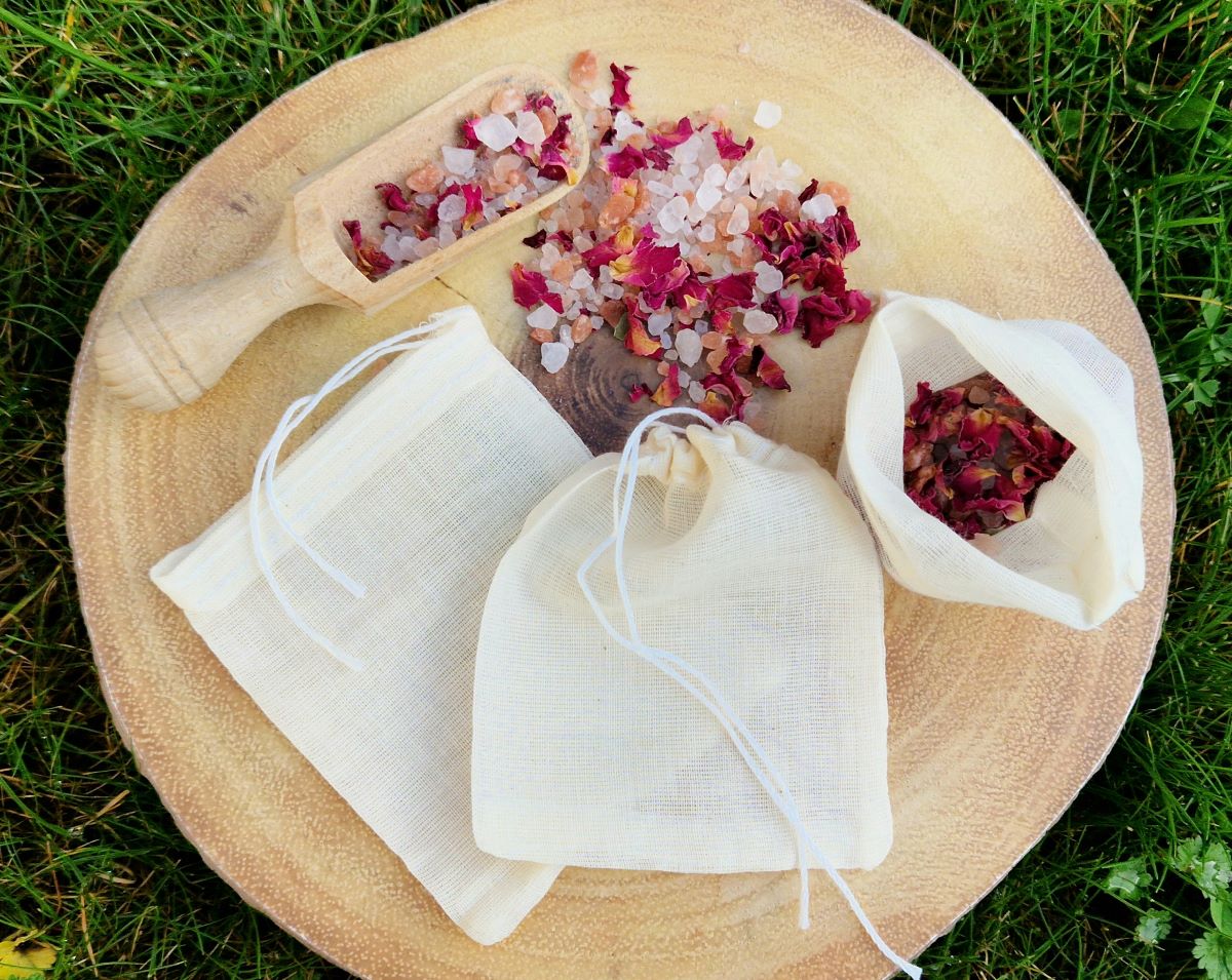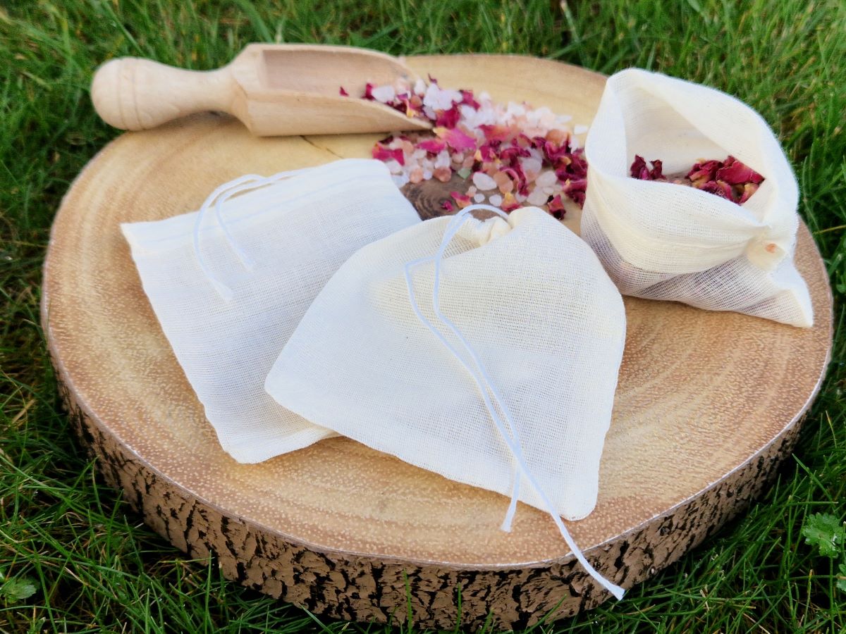 Bath Salt Blends – filter bag for bath salt blends to avoid messy tab after bathing with dried petals or herbs